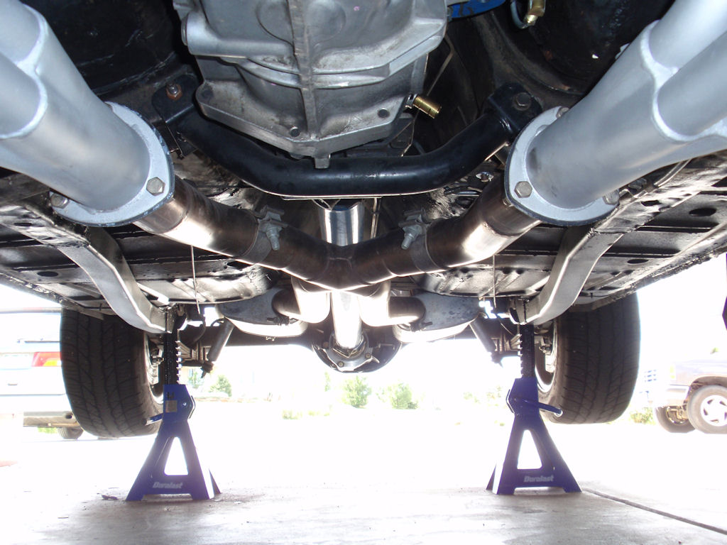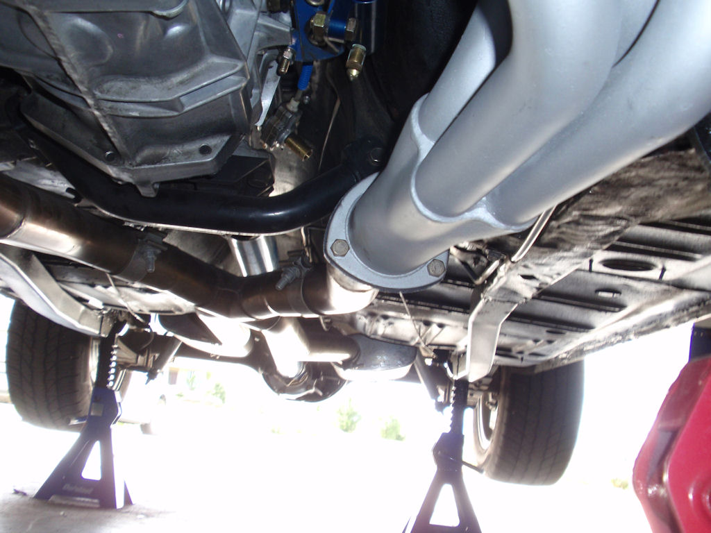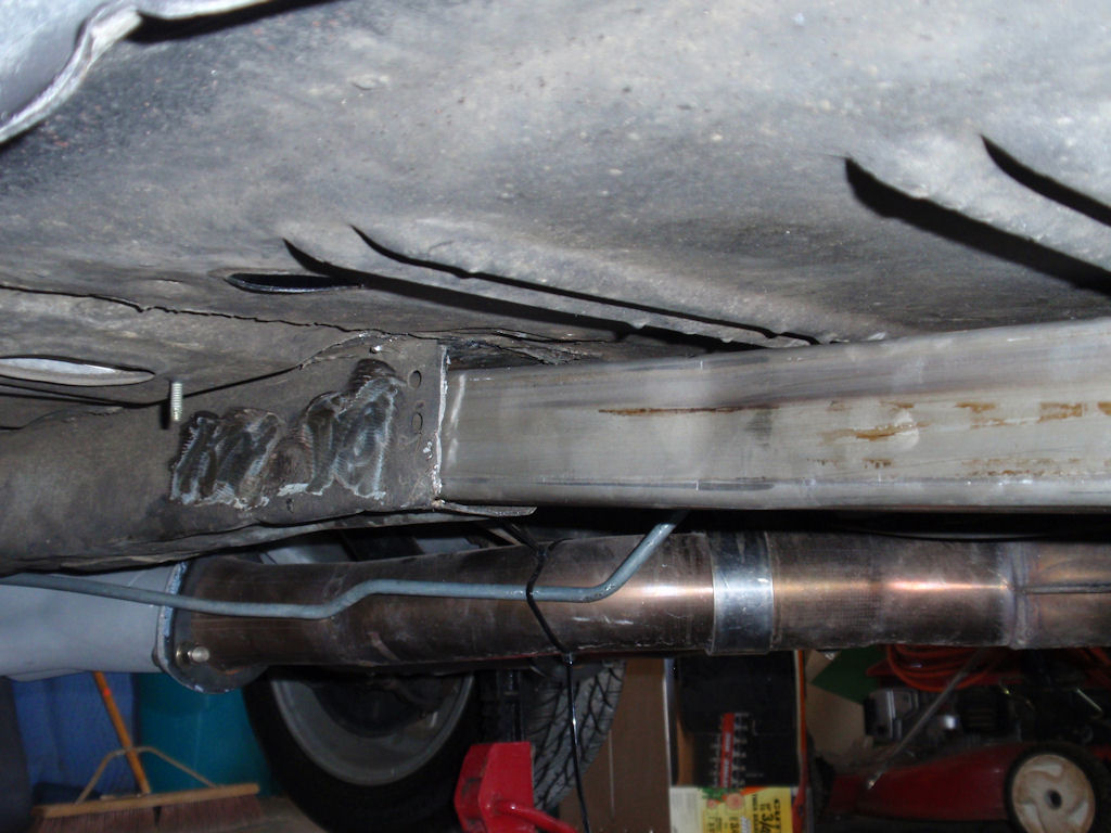 bottom of the tunnel cross member/stiffner. The sub frame connector on the